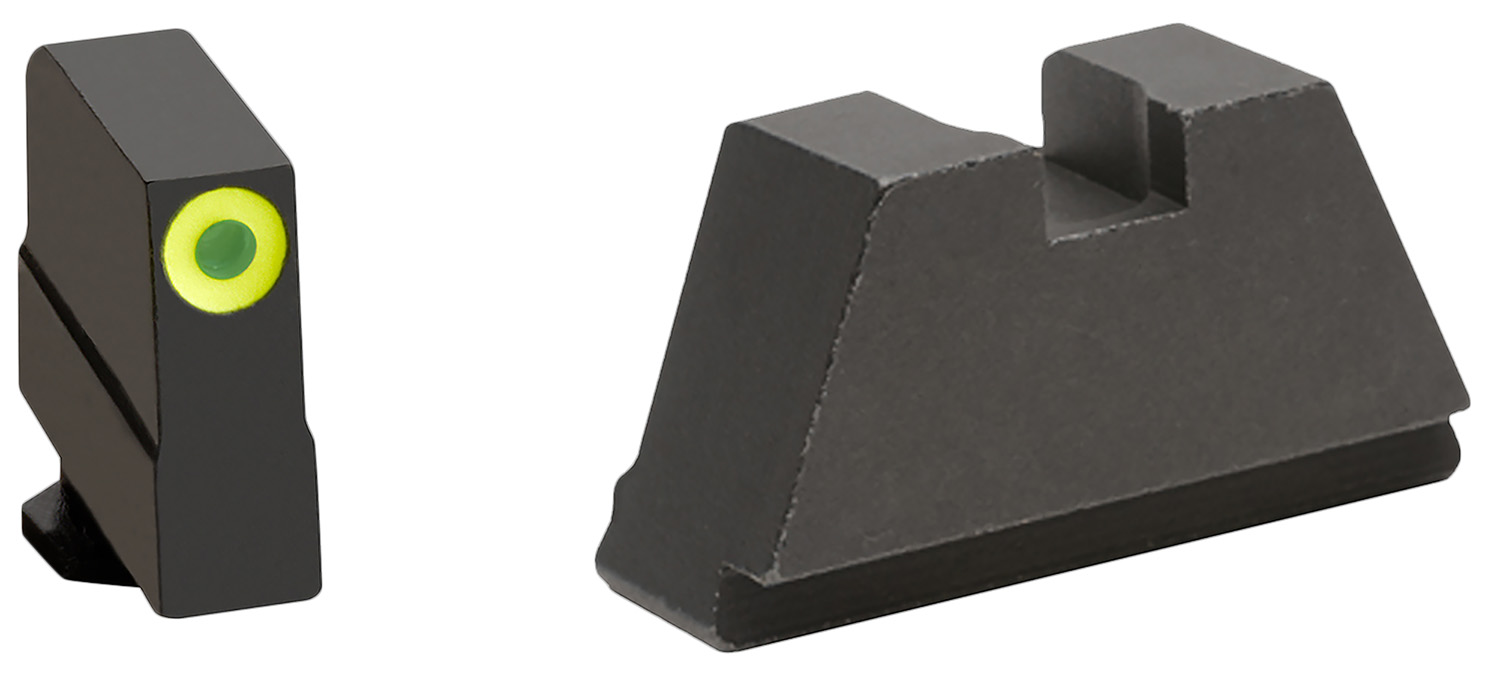 AmeriGlo brings a clear advantage to your shooting experience on and off the range. AmeriGlo Optic Compatible Sight Tall Suppressor Sights set provide a precise, elevated co-witness sight picture for slide-mounted red dot optics and suppressors and serve as reliable back-up sights. This 3XL Tall model has a green tritium front sight with lumigreen outline and flat black rear sight and black finish. It is compatible with all Glock Gen 1-5 models. Fits Glock MOS slide. Compatible with Holosun 407/507/508T, Trijicon RMR/SRO, EOTech EFLX footprints.