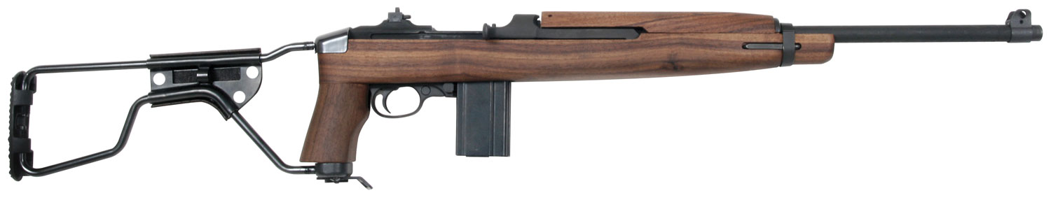 The Auto-Ordnance M1 Carbine features an 18 inch barrel along with a folding walnut stock. It is chambered in .30 Caliber with a 15+1 capacity. This rifle also features a black parkerized finish on the barrel and receiver, a light weight of 5.6 pounds, a single stage trigger, and blade front/adjustable rear sights.
