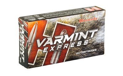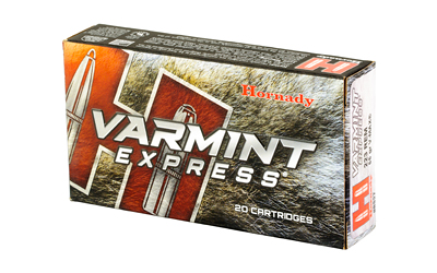 Hornady(R) Varmint Express(R) ammunition is designed around the hard-hitting performance of the famous V-MAX(R) bullet. Polymer tipped V-MAX(R) bullets deliver match accuracy, high ballistic coefficients, wind defying trajectories, and rapid fragmentation upon contact. Each Varmint Express(R) offering is loaded with high quality cases and carefully selected propellant and primers that are chosen to provide the best performance in each individual load.