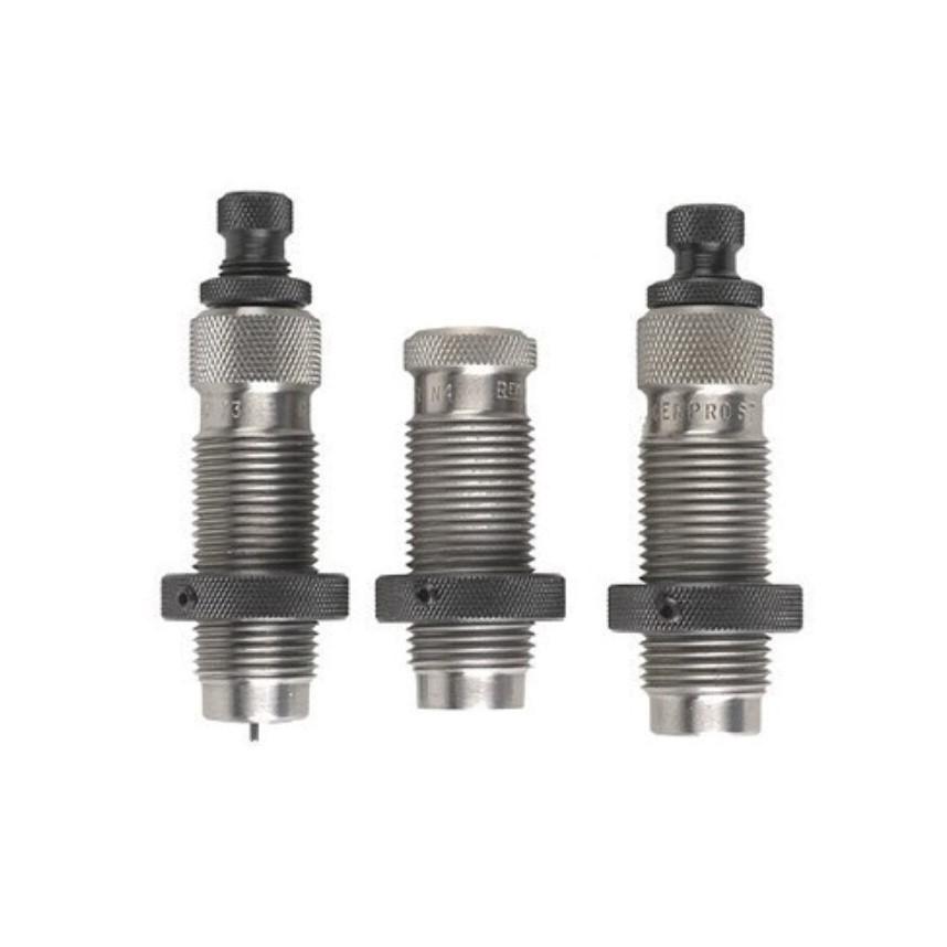 The Redding Pro Series Die Set (designed for progressive machines) includes the NxGEN carbide sizing die but does not include an expander die because most popular progressive machines expand the case mouth at the powder drop station. A special seating die is supplied with a large entry radius but does not provide bullet crimping ability. This set is also supplied with a specialized bullet crimping die.