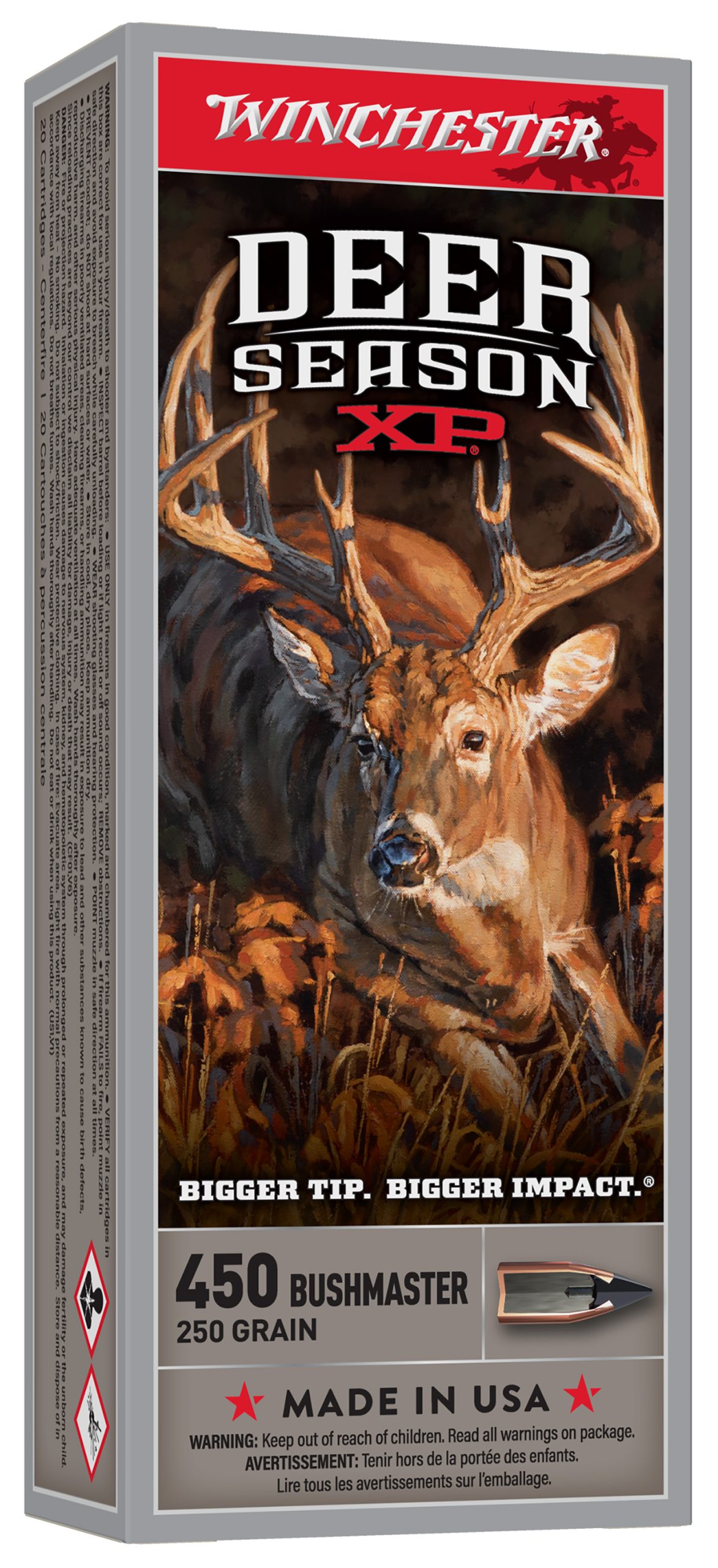 Deer Season XP ammunition combines our extensive experience into a product engineered specifically for deer hunters. The Extreme Point bullet features an oversized impact diameter. A bigger impact diameter means more impact trauma, better energy transfer, and larger wound cavities for faster knockdown.