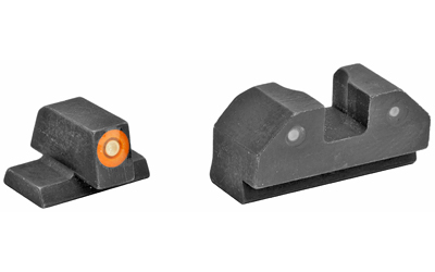 XS R3D Night Sights feature a traditional 3-dot tritium, notch and post sight picture. The blacked-out rear increases contrast against the front sight. The front sight is available in orange or green and is equipped with Ember(R) Glow Dot Technology. Ember absorbs ambient light and glows in low light. The front tritium lamp charges the Ember dot making the front sight glow brighter than the rear at all times, keeping focus downrange. R3D sights are the brightest notch and post option for fast and accurate shooting in bright and low light.